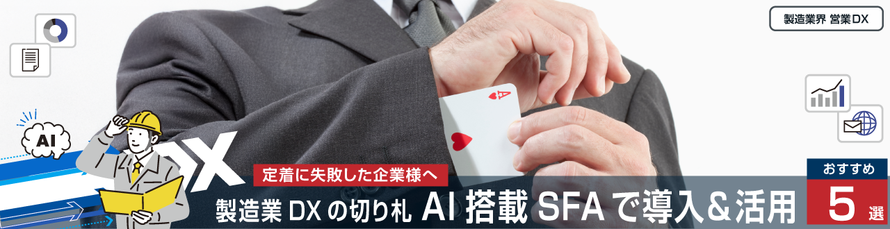 定着に失敗した企業様へ製造業DXの切り札 AI搭載SFAで導入&活用 おすすめ5選